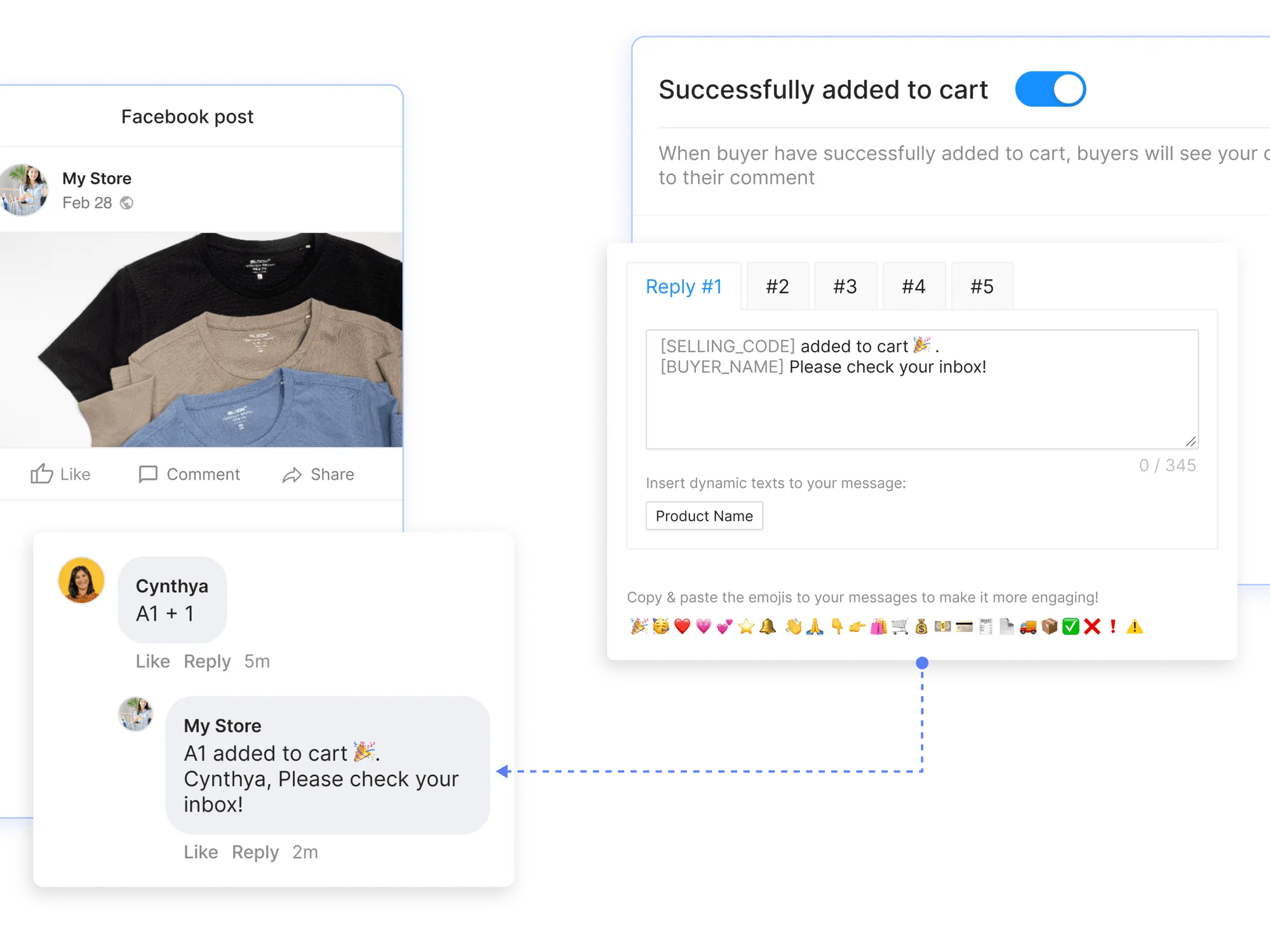 - Boost organic engagement and the performance of the post by replying directly to comments when users perform a trigger action (e.g. add to cart).