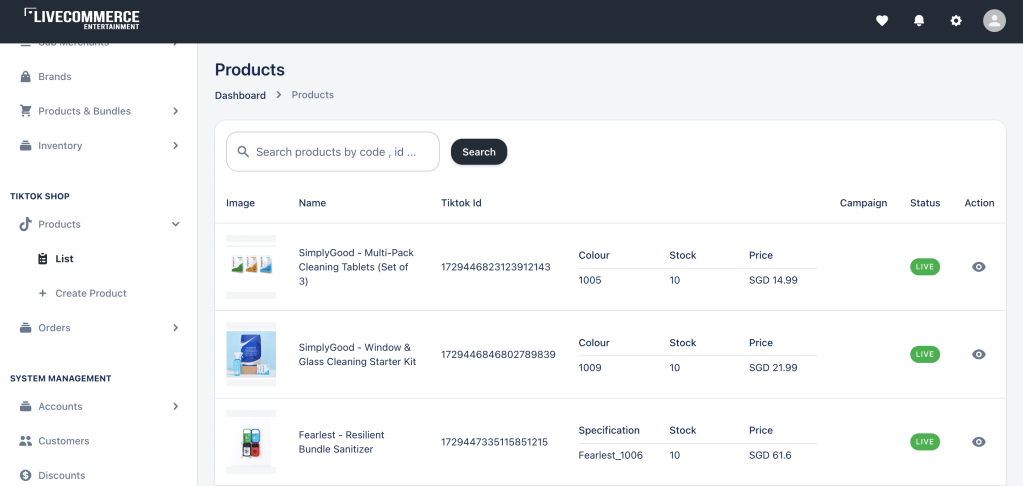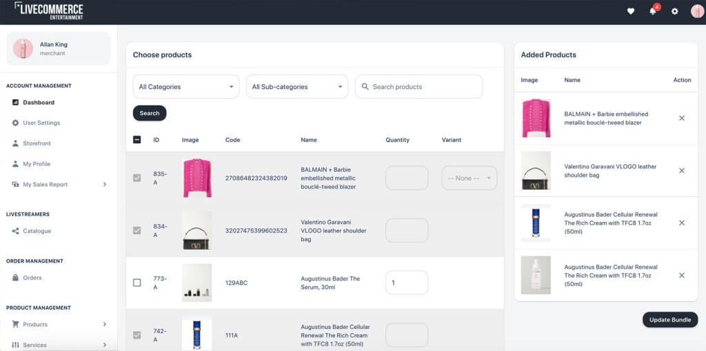 Upload your brand’s products to create an e-commerce store front. Our system will connect into your brands social media pages from our back end to operate live streams